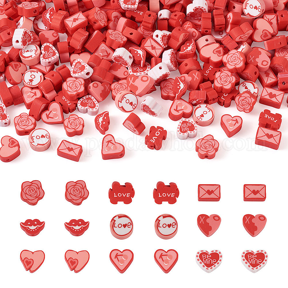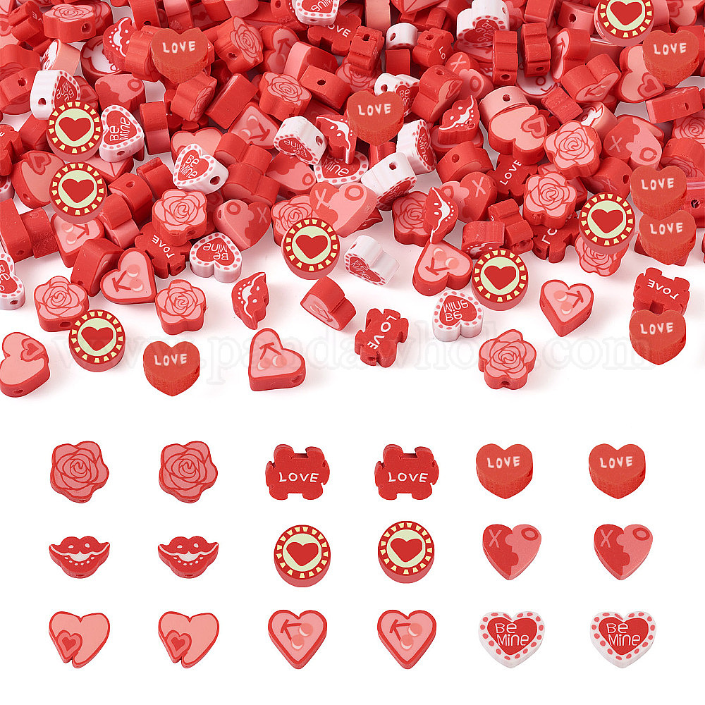 Бусины из полимерной глины ручной работы на тему Дня Святого Валентина, разнообразные