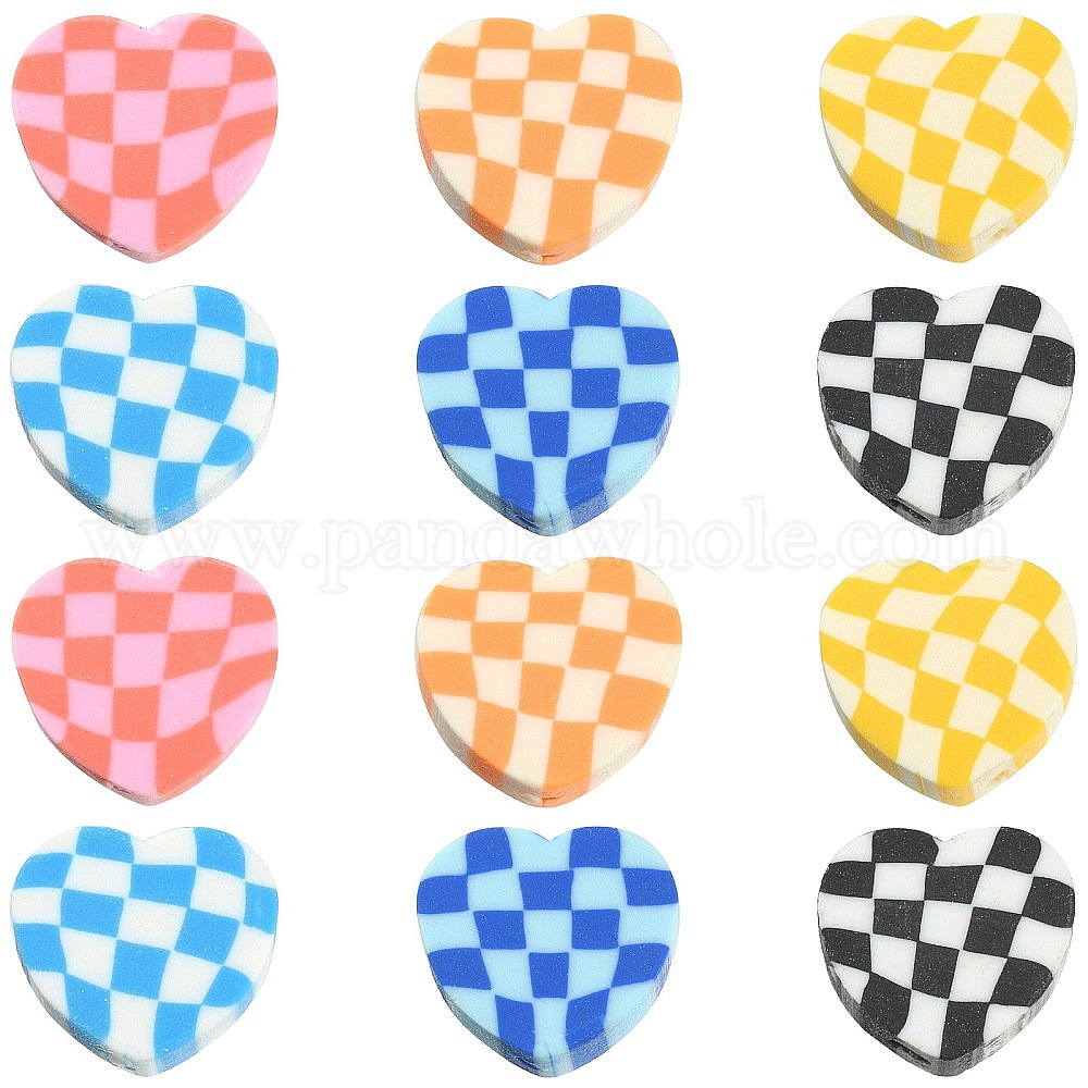 180 шт 6 цвета бусины из полимерной глины ручной работы, сердце с тартаном