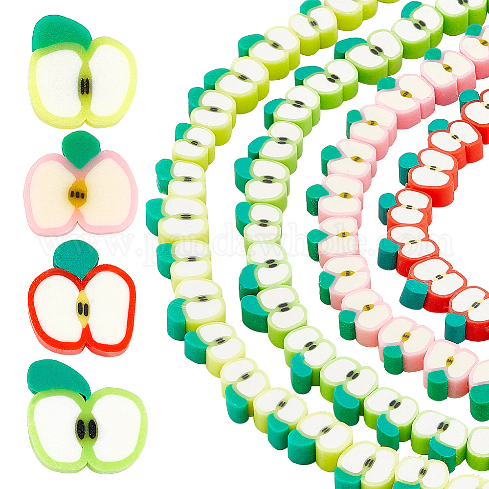 4 прядей 4 раскраски бусин из полимерной глины ручной работы, ломтик яблока