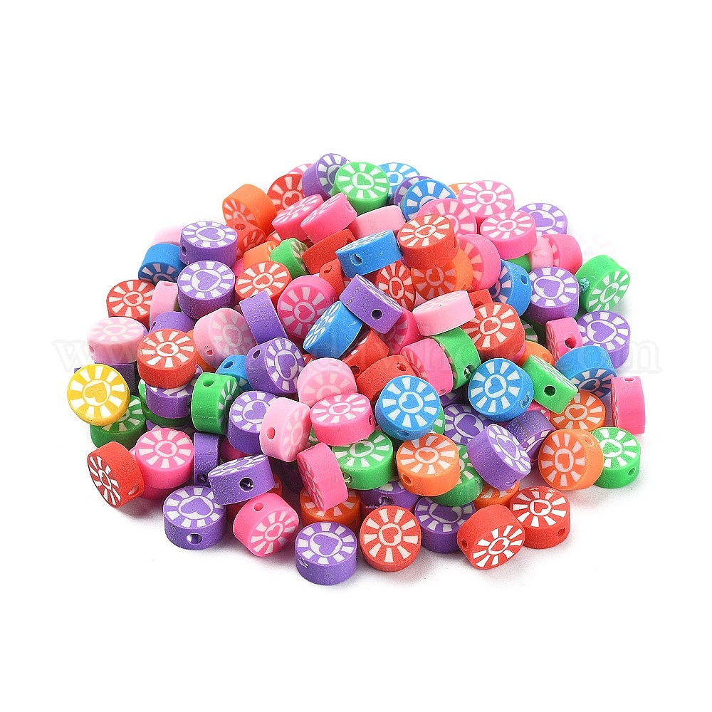 200 бусины из полимерной глины ручной работы., плоский круглый с сердцем и солнцем