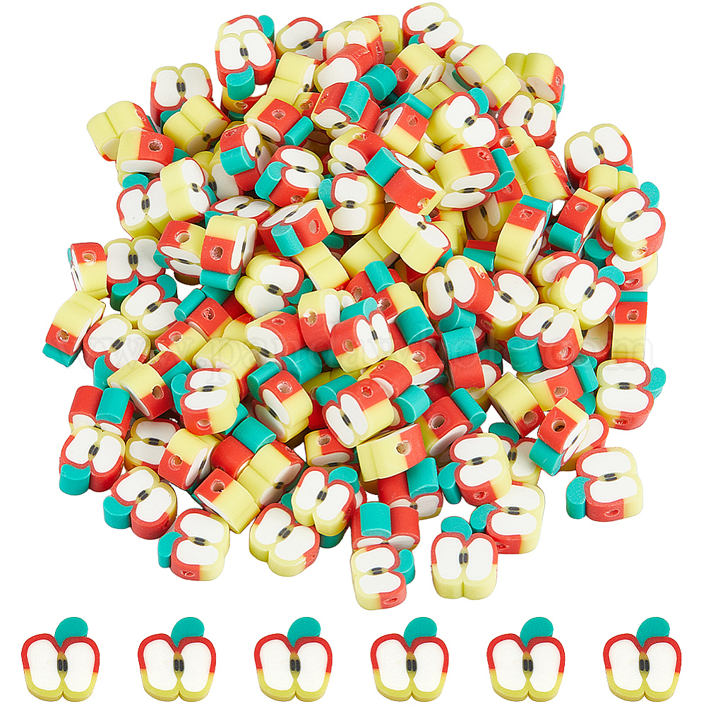 200 бусины из полимерной глины ручной работы., ломтик яблока