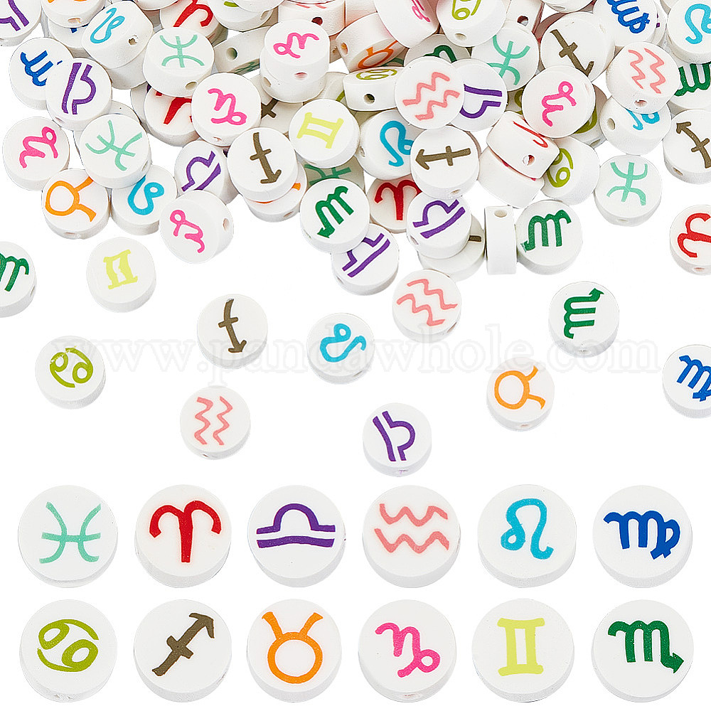 120 шт 12 стили ручной работы из полимерной глины бусины, плоские круглые с созвездием