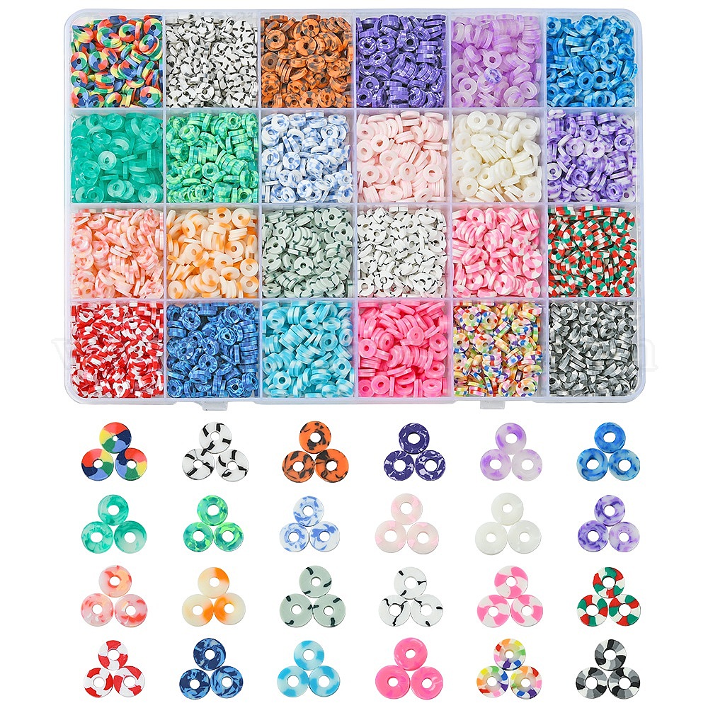 168g 24 стили бусины из полимерной глины ручной работы, Диск / плоские круглые, Heishi бусы