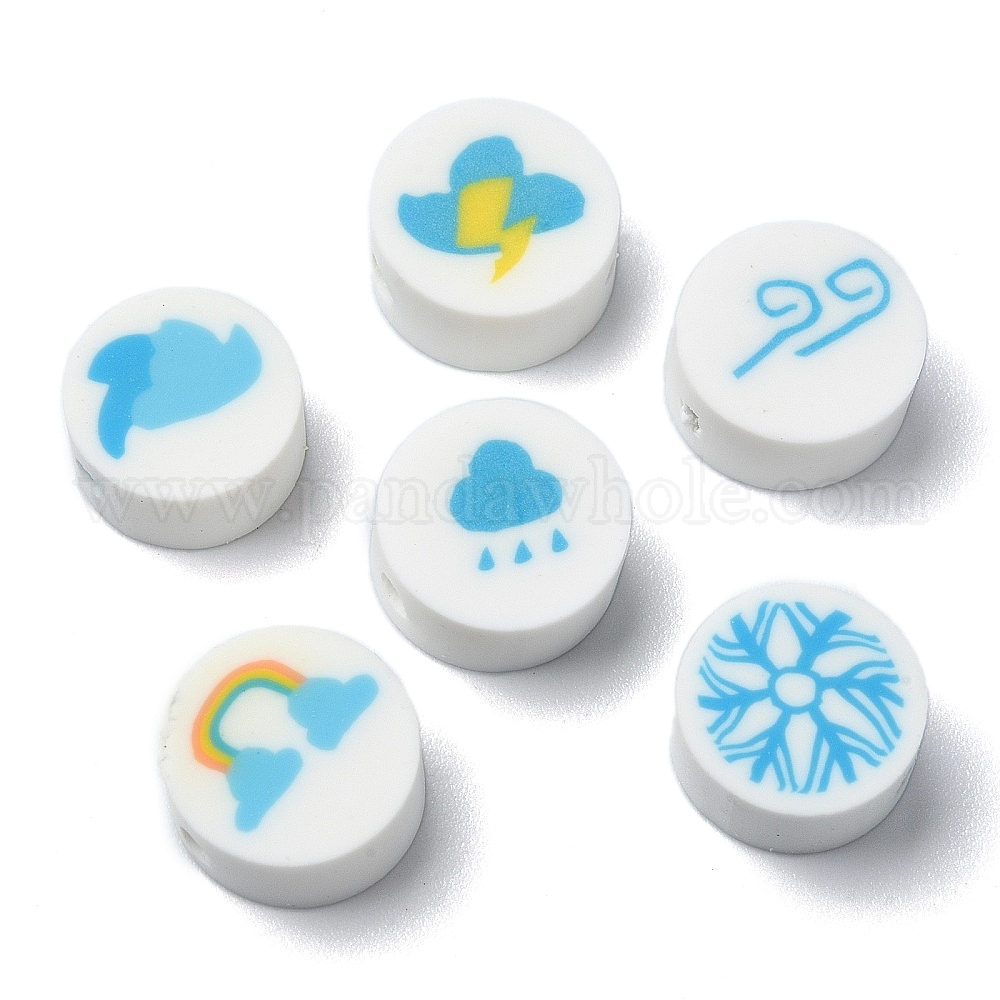 Бусины из полимерной глины , плоский круглый с погодным рисунком