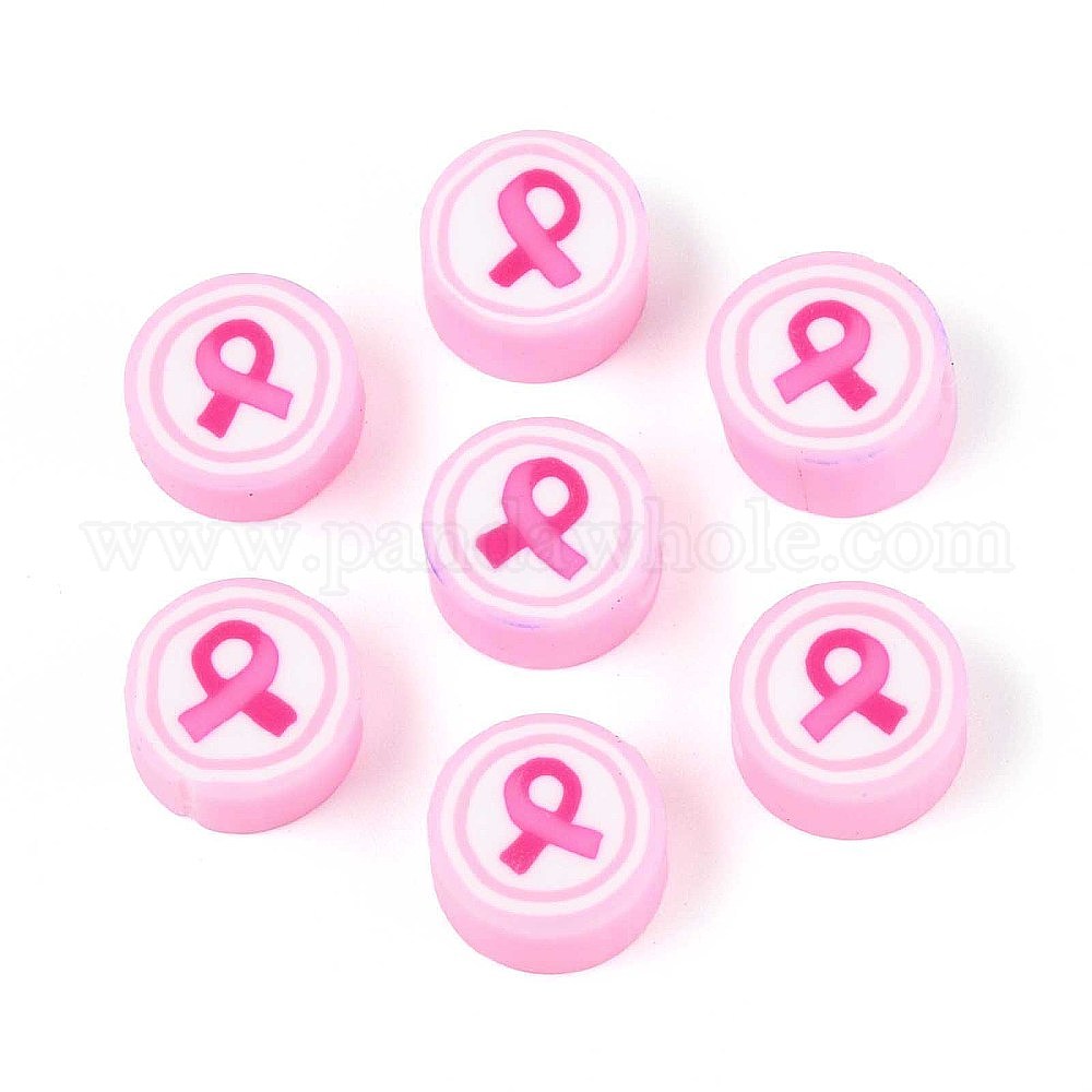 • Pink Бусины из полимерной глины , плоский круглый с лентой, розовые, 9x4 мм, отверстие : 1.6 мм