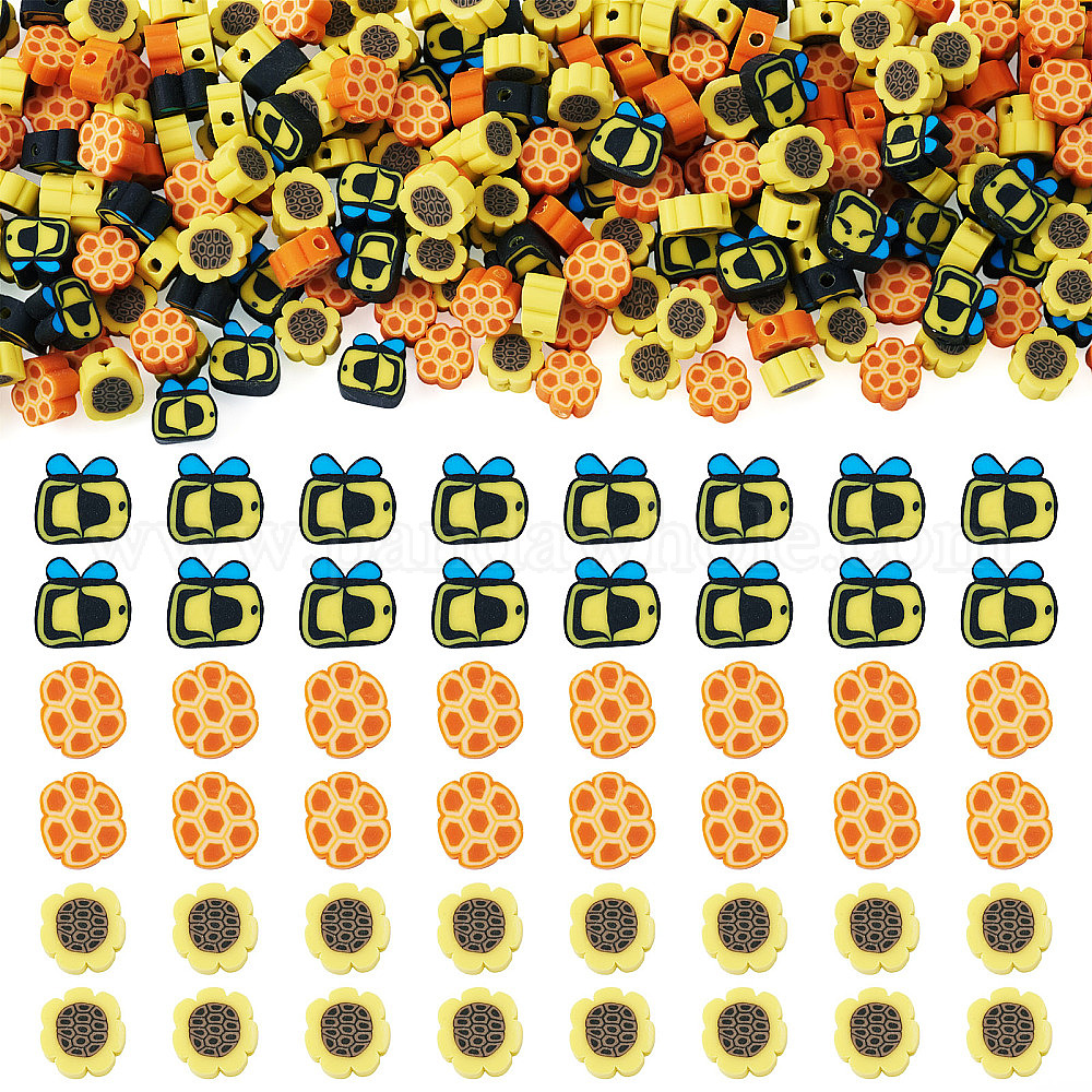 90g бусины из полимерной глины ручной работы, пчелы/цветок/соты