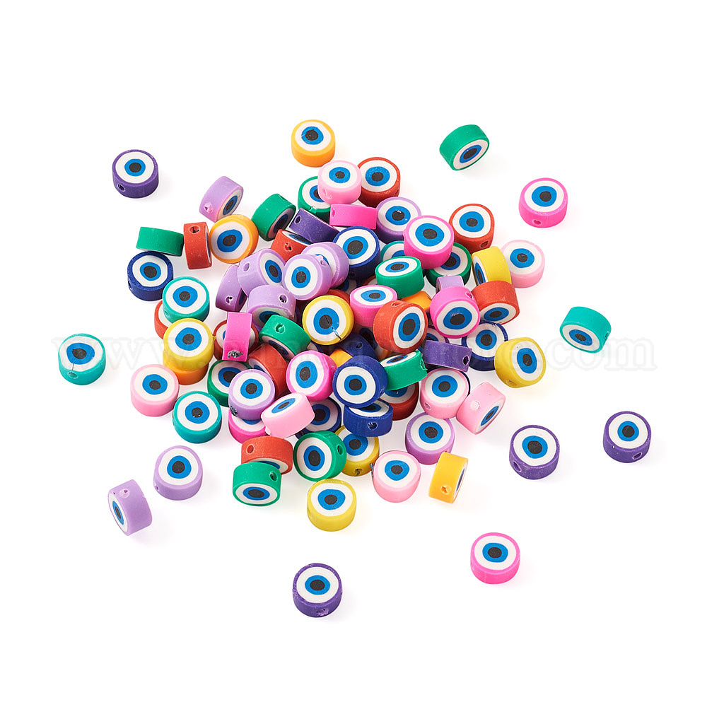 • Разноцветный Бусины из полимерной глины , плоские круглые с глаз, красочный, 10.5~11x5 мм, отверстие : 1.2 мм