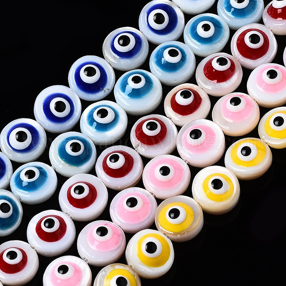 Естественных пресноводных оболочки бисер нитей, с эмалью, плоские круглые с сглаза