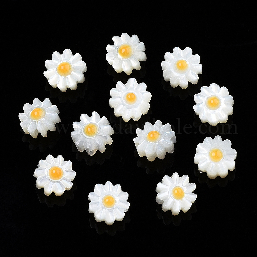 Бусины из натуральной белой эмали, цветок