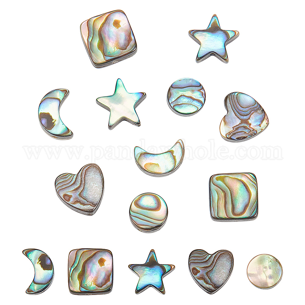 10шт 5 стили наборы бусин из натуральной ракушки абалон/ракушки пауа, звезда, сердце и квадрат, разнообразные (02K324)