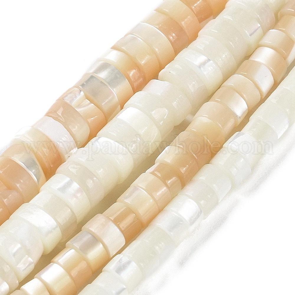 • Белый Навахо Натуральные бусины из ракушек трохуса, Плоский круглый / диск, Heishi бусы, граненые, навахо белый, 5~6x2~2.5 мм, отверстие : 1 мм, около 175 шт / нитка, 15.67'' (39.8 см)