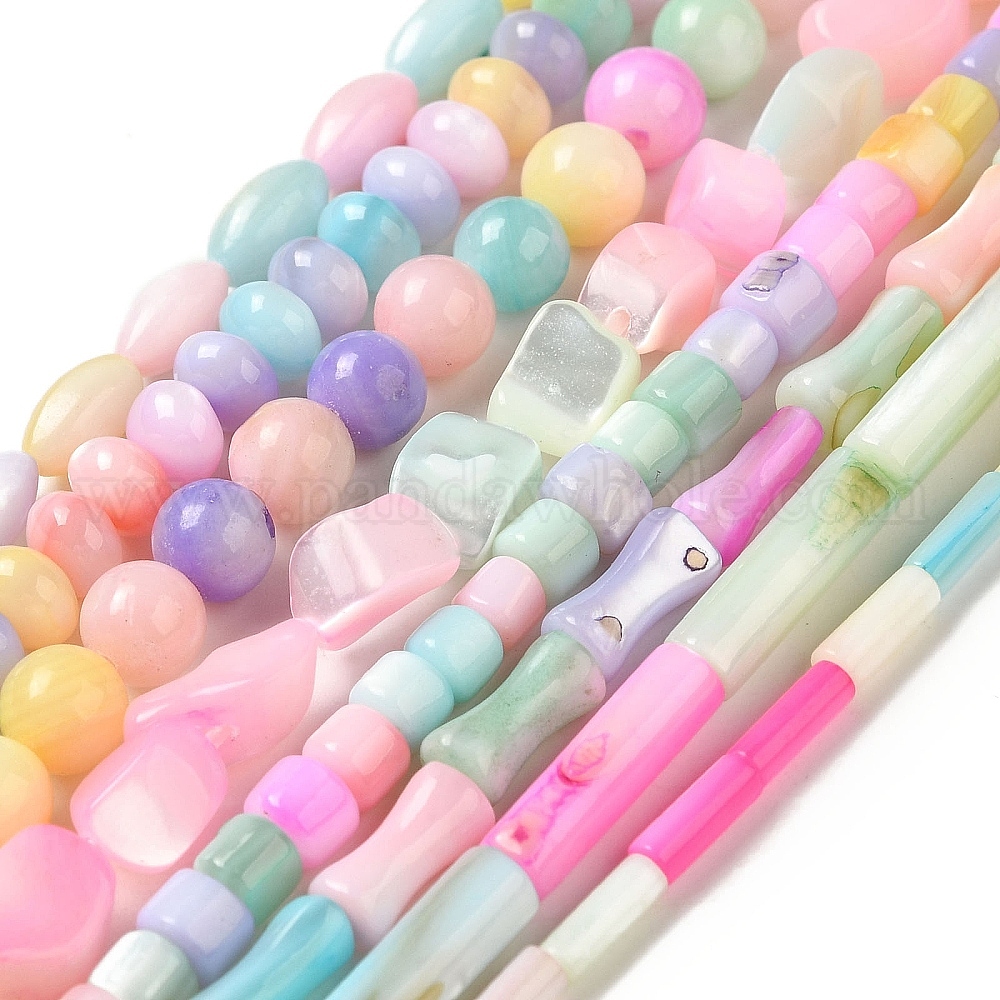 Нити бусин из натуральных пресноводных ракушек, окрашенные в цвета радуги, разноцветные, круглый/рондель/наггетсы/столбик/рис
