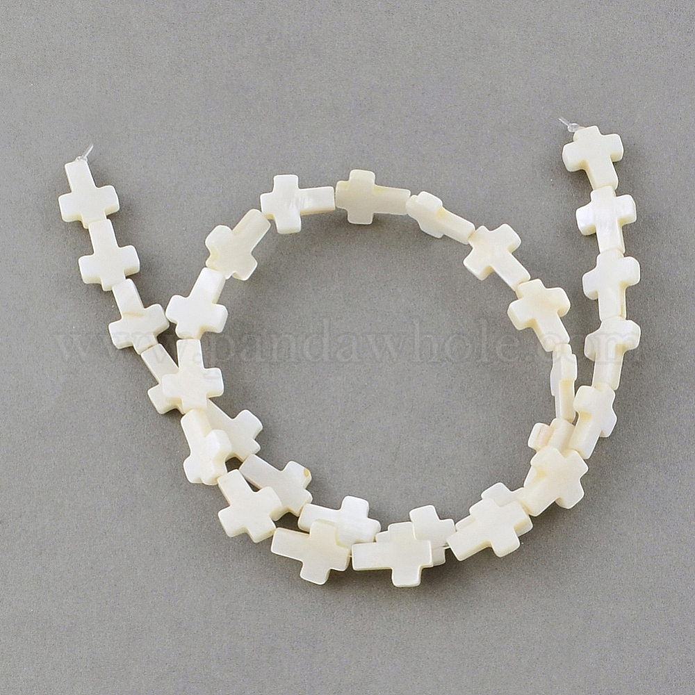 • Кремово-белый Природные морские раковины бисер нитей, крестик, кремово-белые, 11~12x9~10x2~3 мм, отверстие : 0.8~0.9 мм, около 30 шт / нитка, 14.5 дюйм