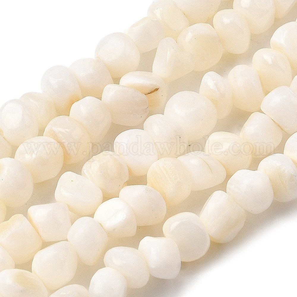 • Морская Ракушка Естественных пресноводных оболочки бисер нитей, самородки, цвет морской раковины, 5~6.5x5~6.5x3.5~6 мм, отверстие : 1 мм, 14.76~15.35'' (37.5~39 см)
