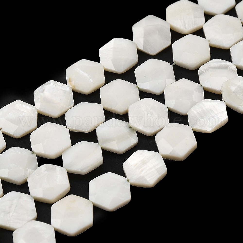 Натуральный белый стеклянные бусы нити, граненые, шестиугольник