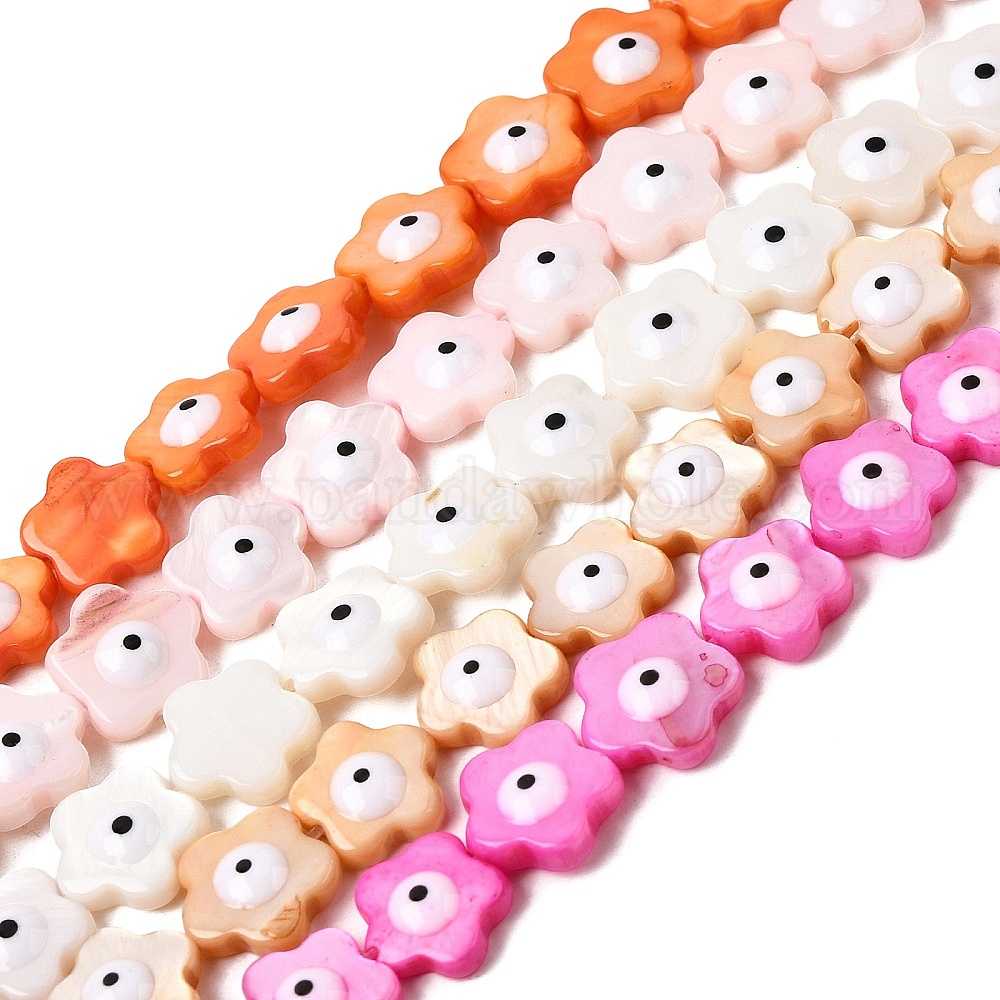 Окрашенные естественных пресноводных стеклянные бусы нити, с эмалью, цветок с сглаза