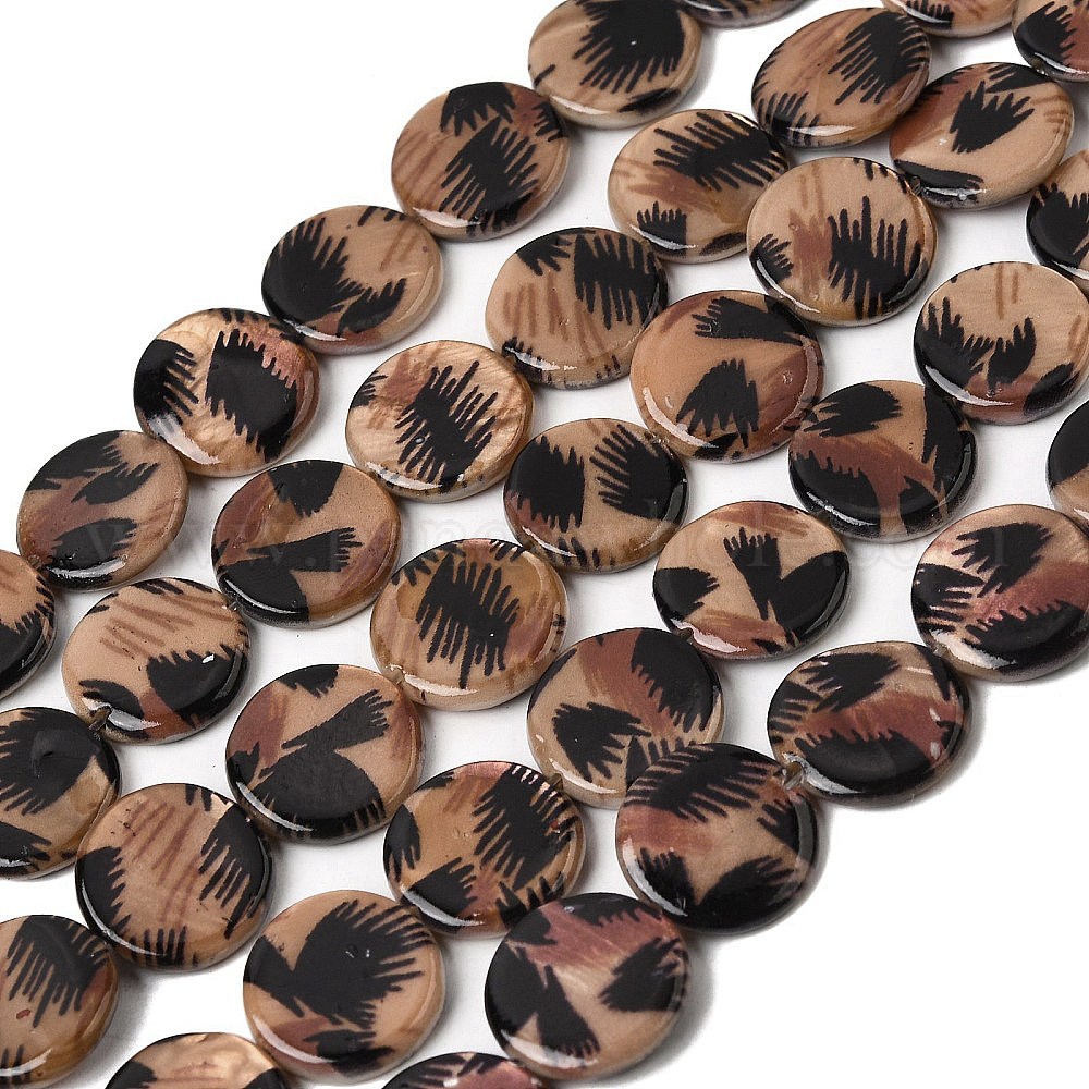 Нити из натуральных пресноводных ракушек с принтом, окрашеные, плоско-круглые