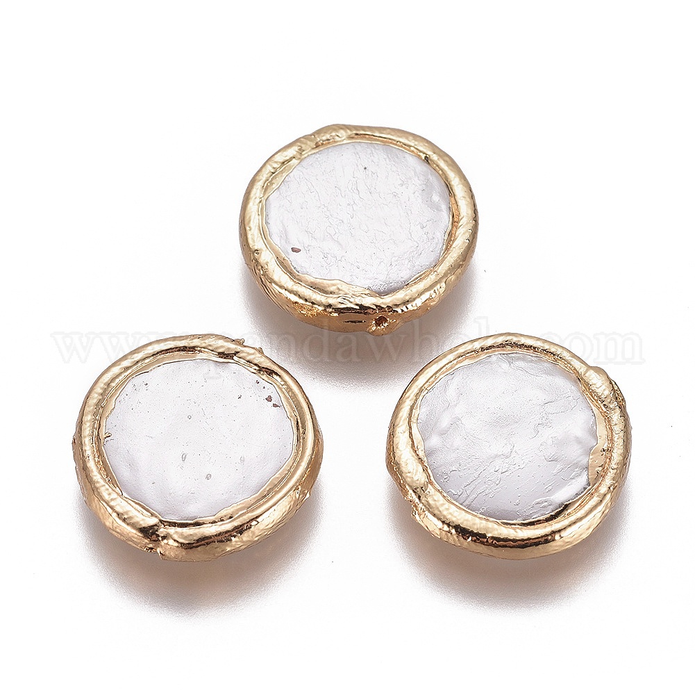 Стеклянные бусы, край позолоченный, плоско-круглые