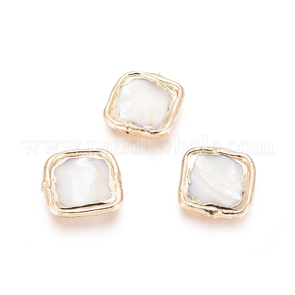 Стеклянные бусы, с латунной фурнитурой , позолоченный край, квадратный