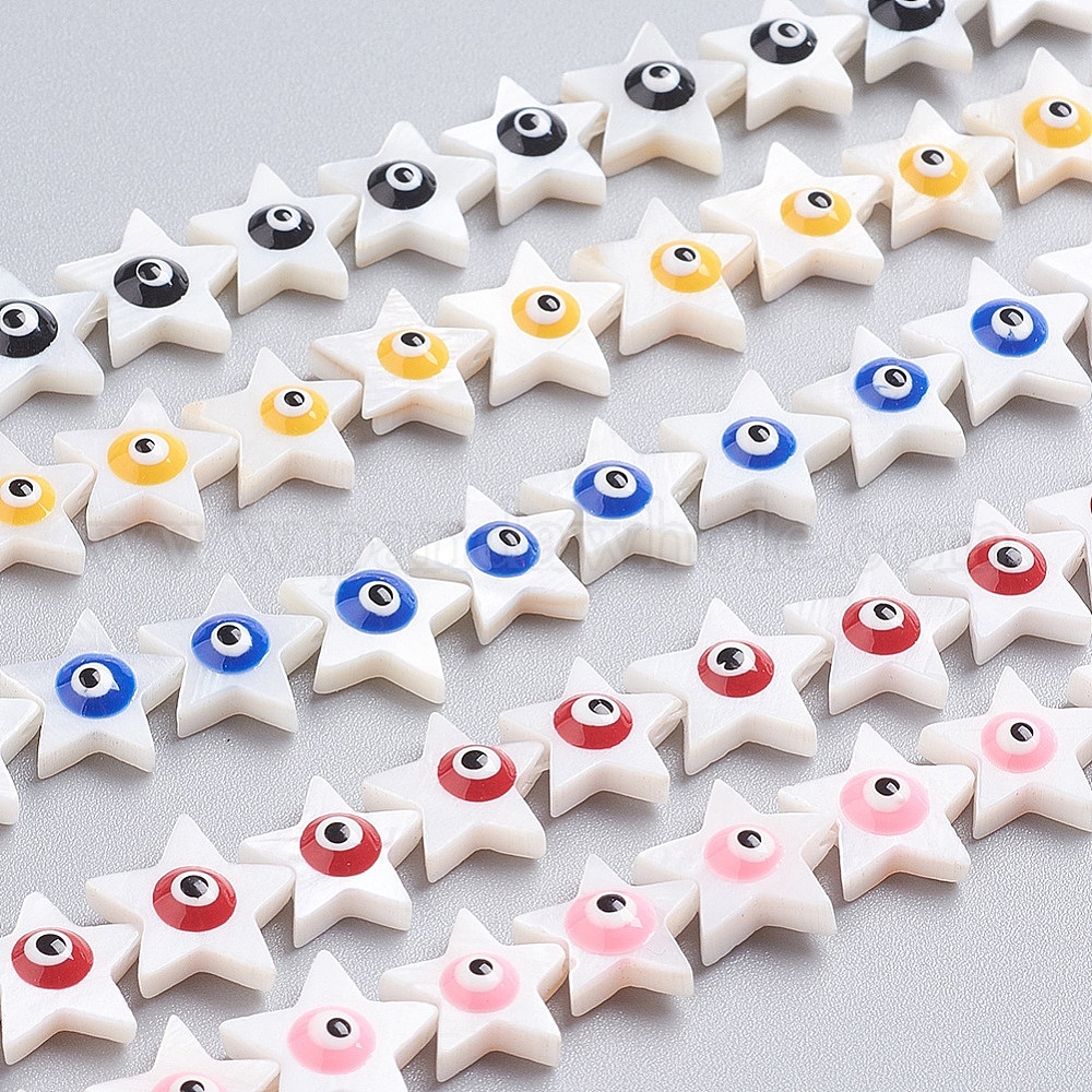 Природные стеклянные бусы нити, с эмалью, звезда с дурным глазом (02363B)