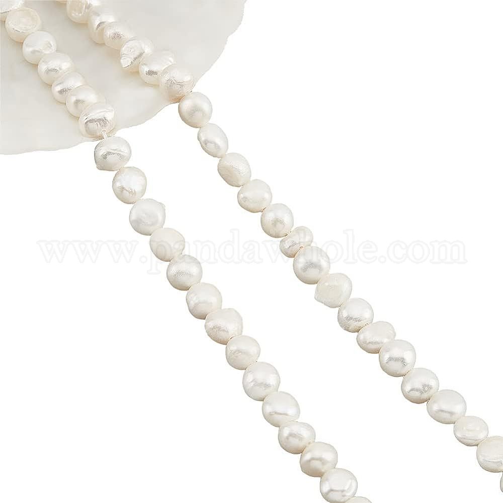 нити бусин из натурального культивированного пресноводного жемчуга: около 7~8x7~8x4~6мм, отверстие : 0.7 мм, около 53~54 шт / нитка, 13.98 дюйм ~ 14.37 дюйм (35.5~36.5 см), 2 нити/коробка;