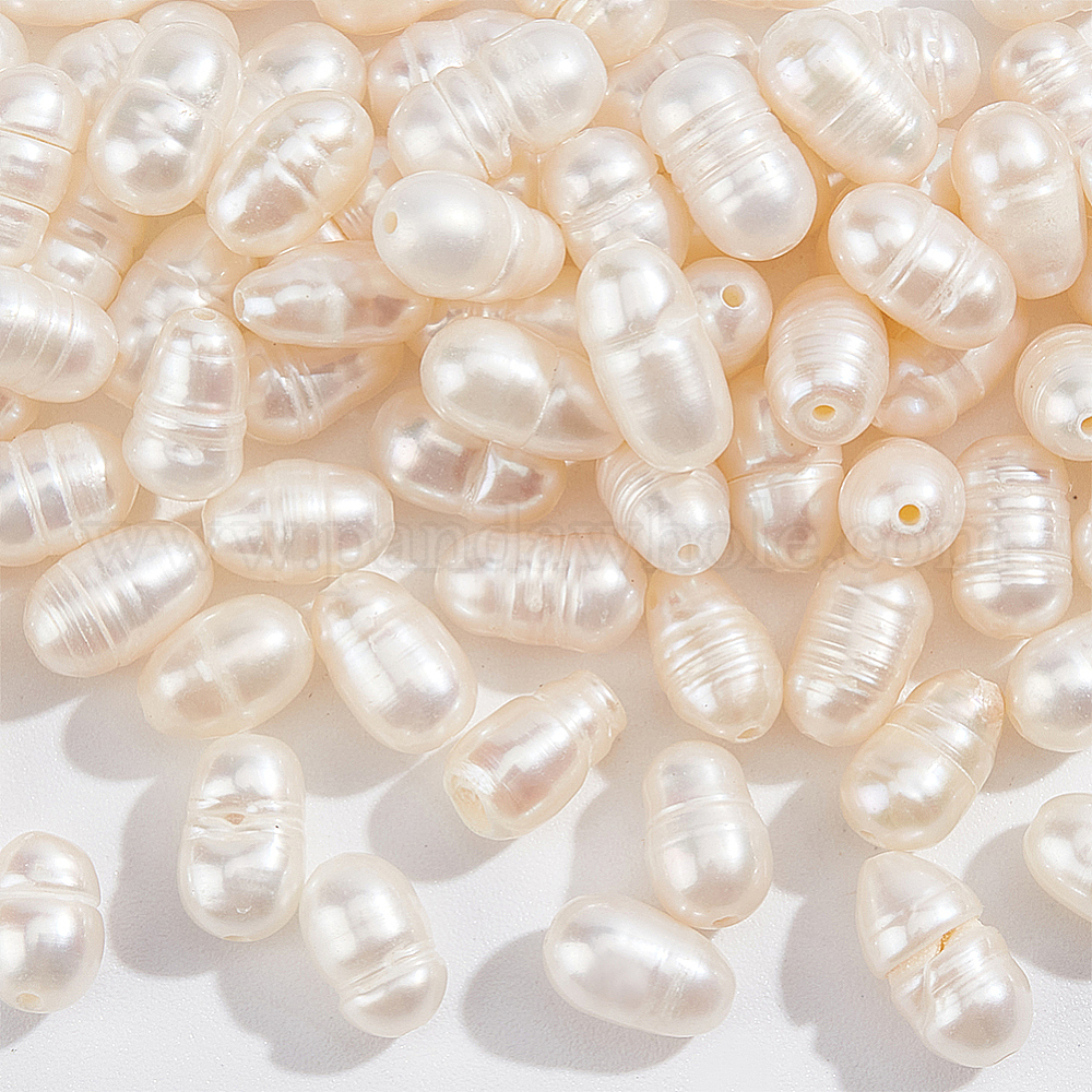 рис натуральный культивированный пресноводный жемчуг нити: около 4~5мм шириной, 5.6~7 мм длиной, Отверстие : 0.8 мм; около 27 шт / нитка, 7.1 дюйм (18 см), 3 пряди;