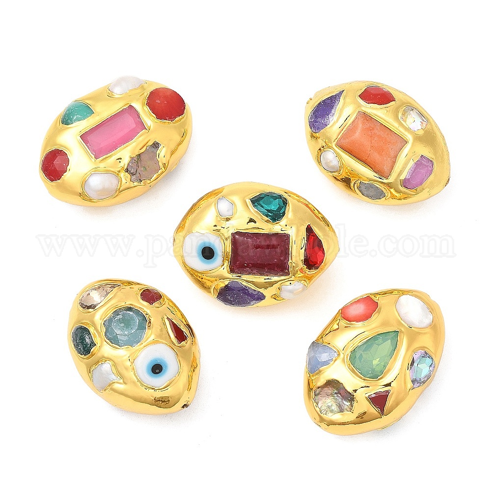 • (52) Непрозрачная лаванда Овальные латунные бусины из натурального культивированного пресноводного жемчуга, долговечный, с лэмпворком, стеклом и крашеным нефритом, золотые, разноцветные, 35x24.5~26.5x19~19.5 мм, отверстие : 1 мм