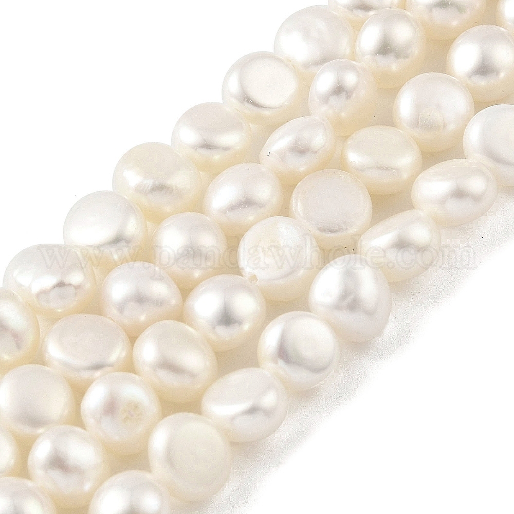 Нити из натурального культивированного пресноводного жемчуга, двух сторон полированной
