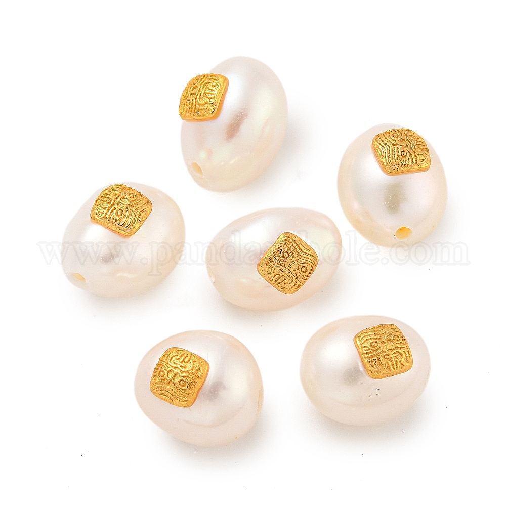 • Настоящее золото 18K Овальные бусины из натурального пресноводного жемчуга, с долговечной латунной квадратной фурнитурой с покрытием из гальванизированной стали, реальный 18 k позолоченный, 10~11x8~9x8.5~9 мм, отверстие : 1.2 мм