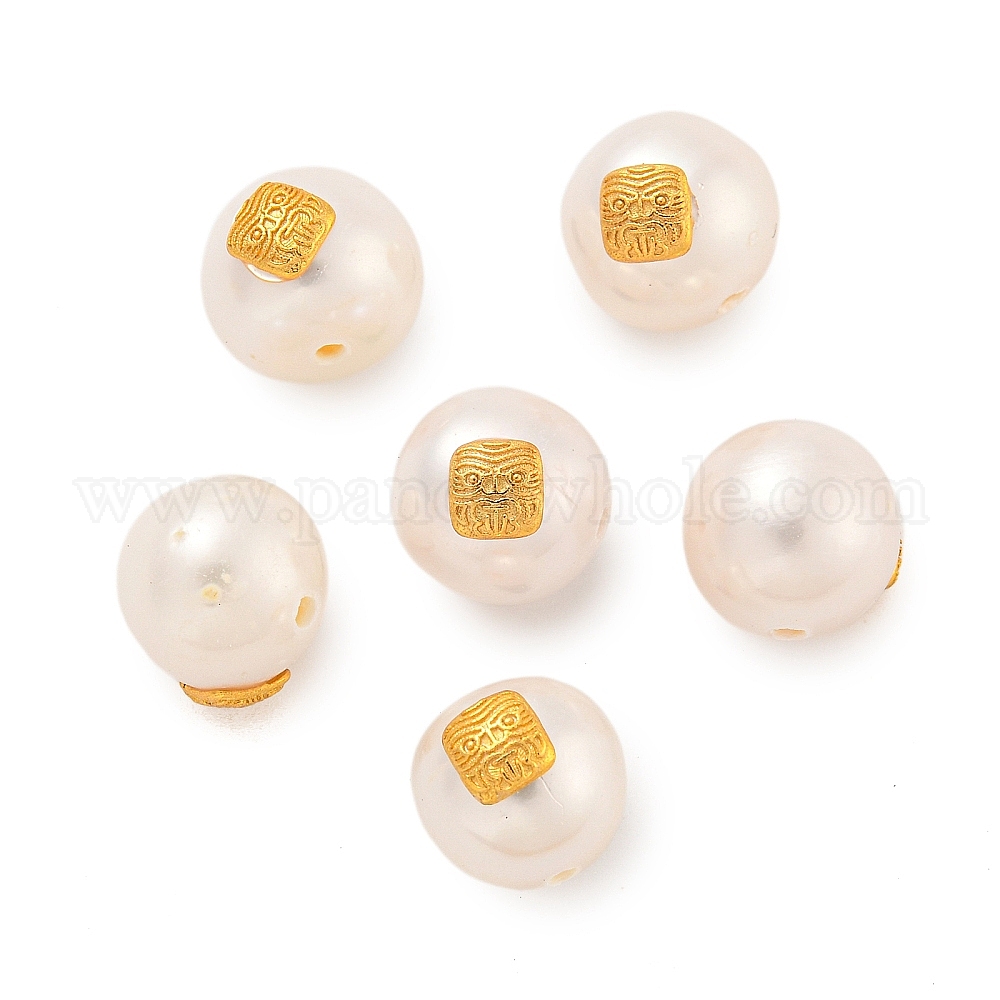 Круглые бусины из натурального пресноводного жемчуга, с долговечной латунной квадратной фурнитурой с покрытием из гальванизированной стали