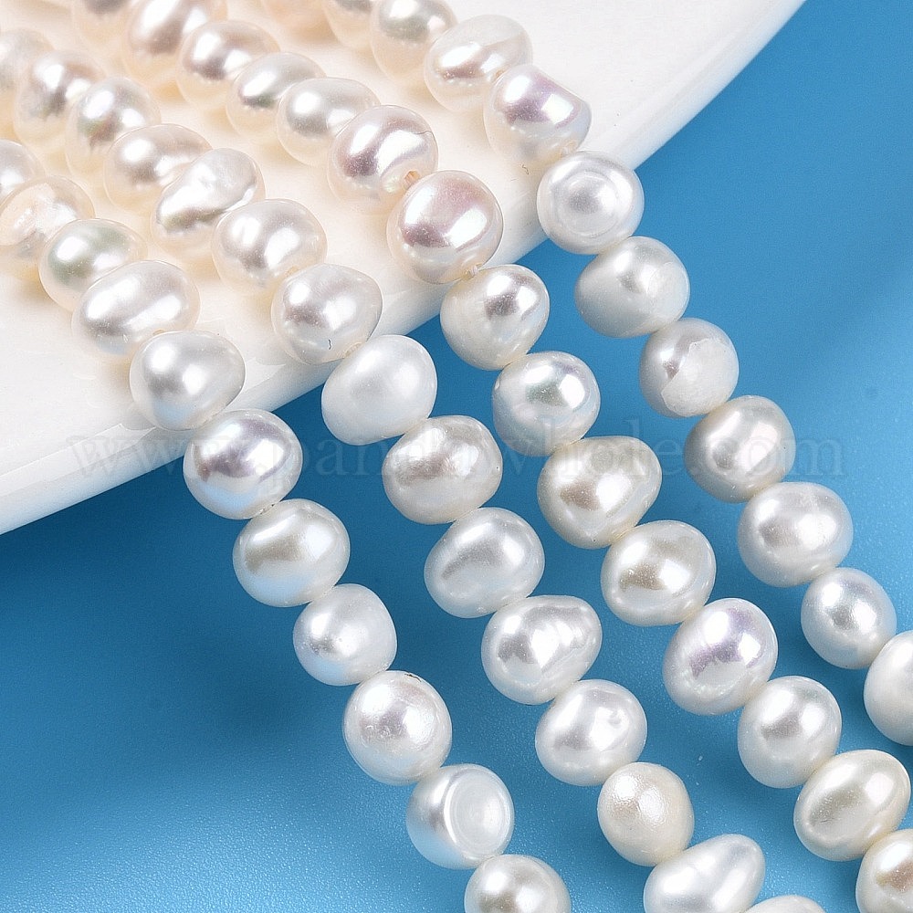 Нити из натурального культивированного пресноводного жемчуга, двух сторон полированной
