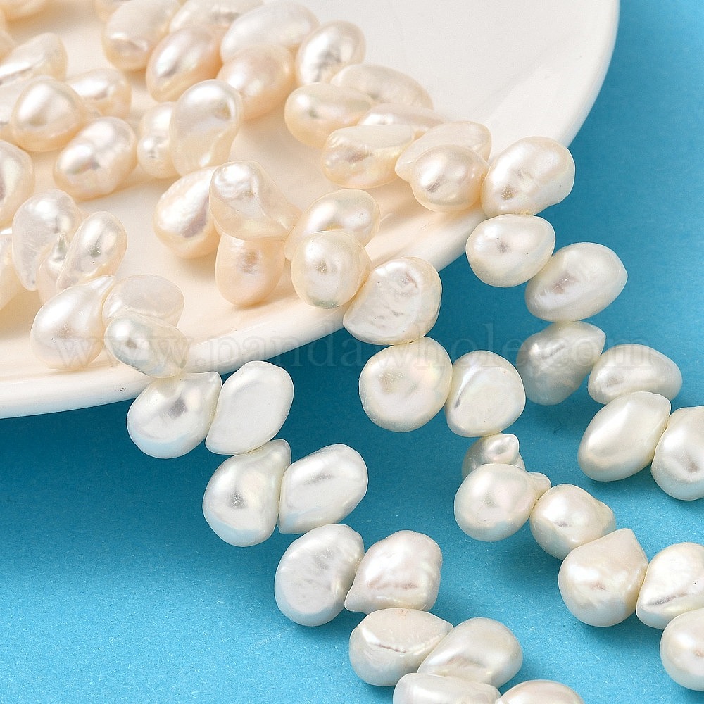 Нити из натурального культивированного пресноводного жемчуга, двух сторон полированной, Топ пробуренной, класс 5а+