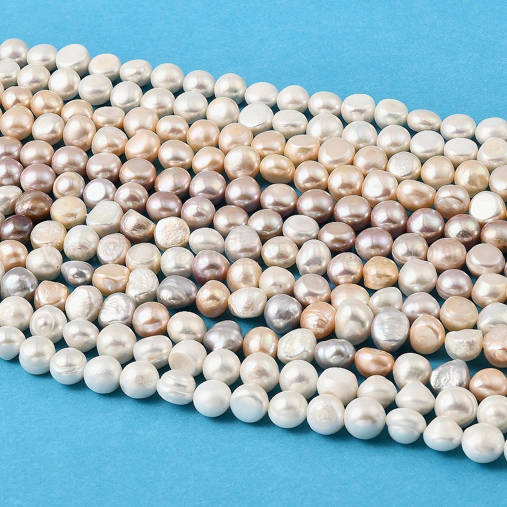 Нити из натурального культивированного пресноводного жемчуга, двух сторон полированной