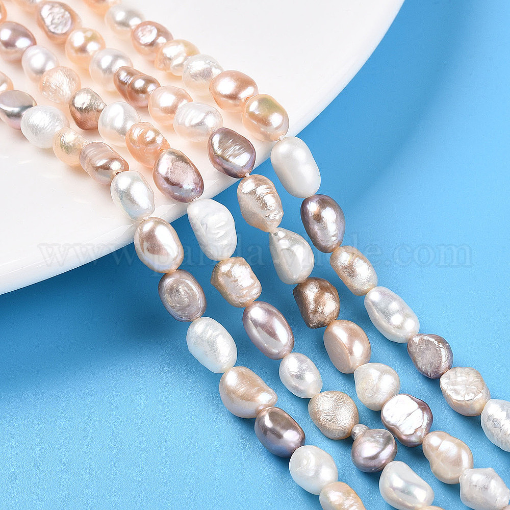 Нити из натурального культивированного пресноводного жемчуга, двух сторон полированной