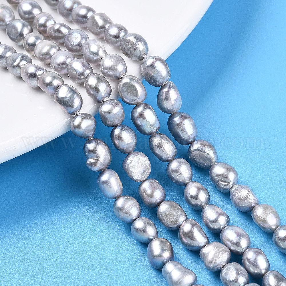 Нити из натурального культивированного пресноводного жемчуга, двух сторон полированной, окрашенные