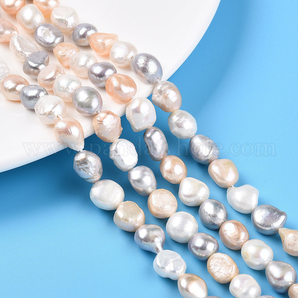 Нити из натурального культивированного пресноводного жемчуга, двух сторон полированной