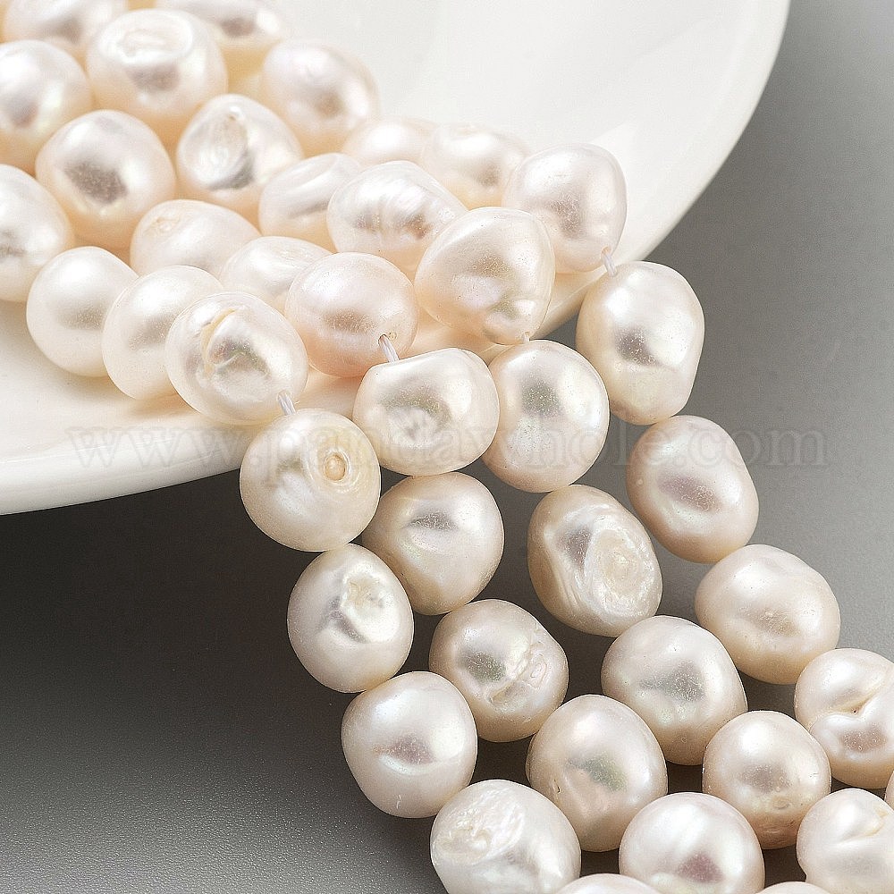 Нити из натурального культивированного пресноводного жемчуга, двух сторон полированной