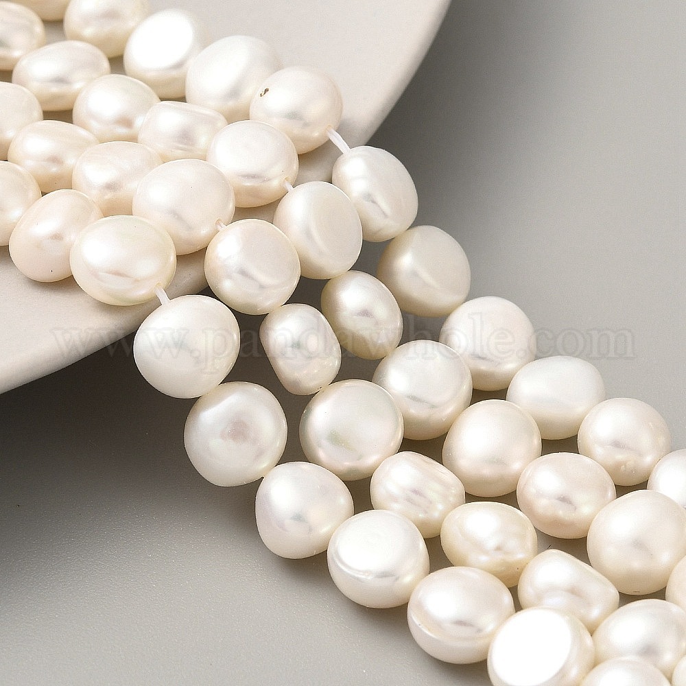 Нити из натурального культивированного пресноводного жемчуга, двух сторон полированной