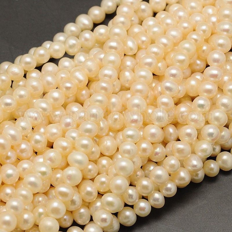 Нити из натурального культивированного пресноводного жемчуга, круглые, 5~6 мм, отверстие : 0.8 мм, около 73 шт / нитка, 14.9 дюйм