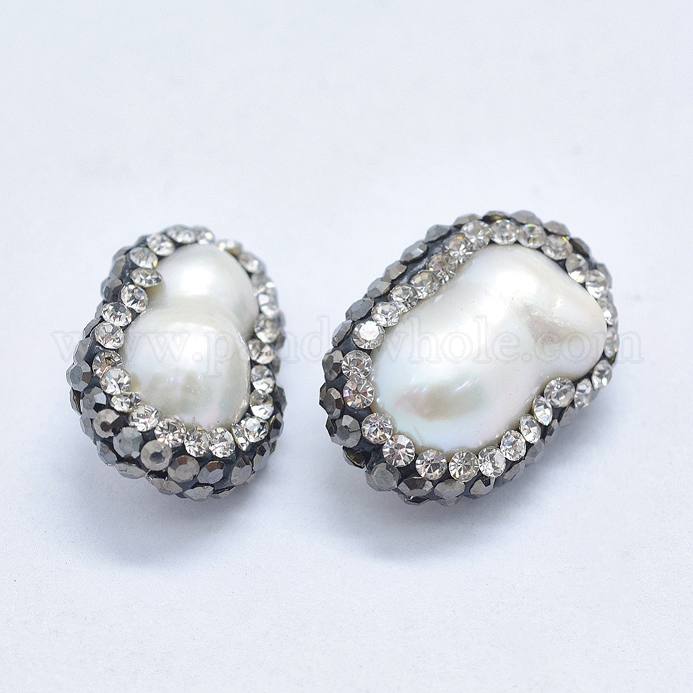 Естественный культурный жемчуг пресноводных, с полимерной глиной класса горный хрусталь, овальные