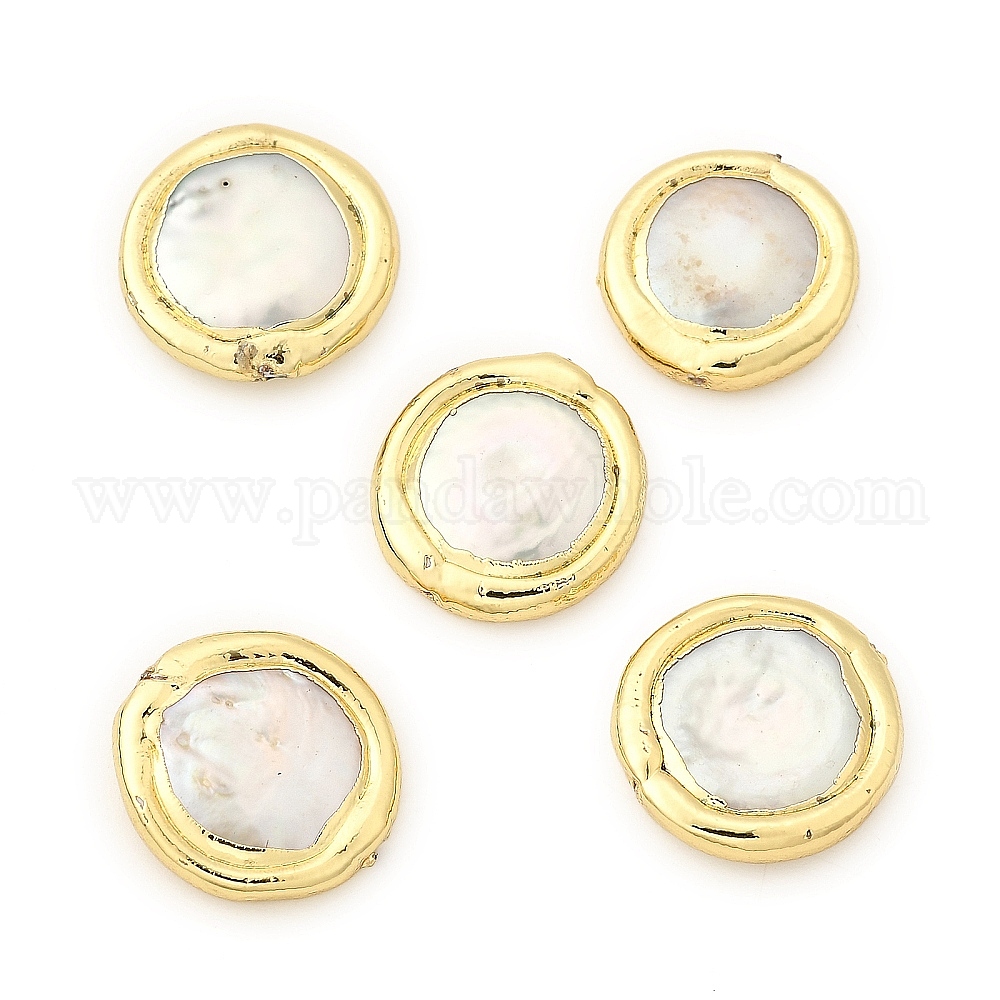 Натуральный жемчуг в стиле барокко, культивированный пресноводный жемчуг, край позолоченный, плоско-круглые