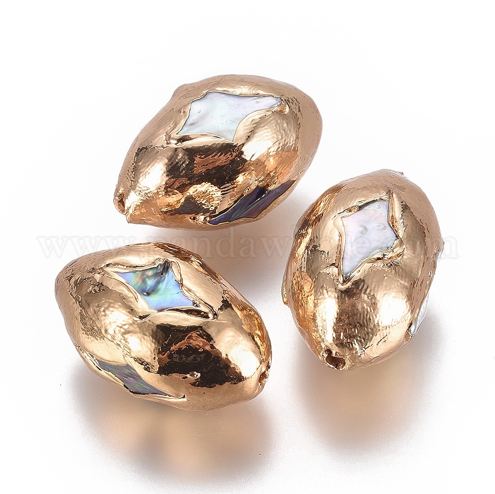 Естественный культурный жемчуг пресноводных, край позолоченный, лошадиный глаз