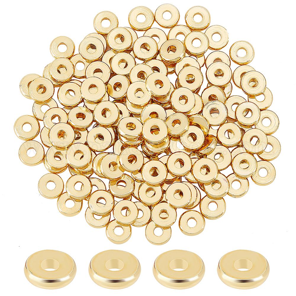 150 латунные бусины шт., долговечный, Плоский круглый / диск, Heishi бусы