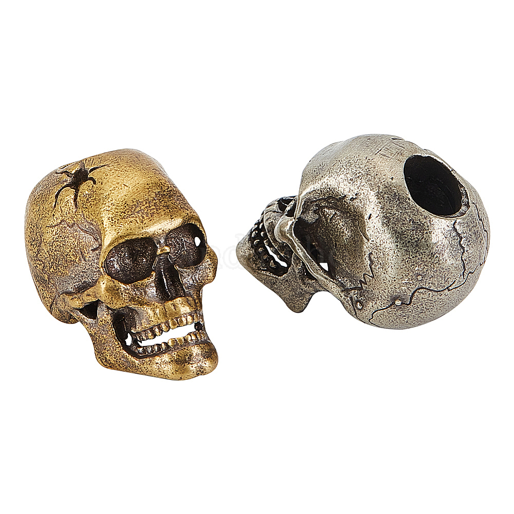 2 шт. 2 цвета латунных бусин, череп