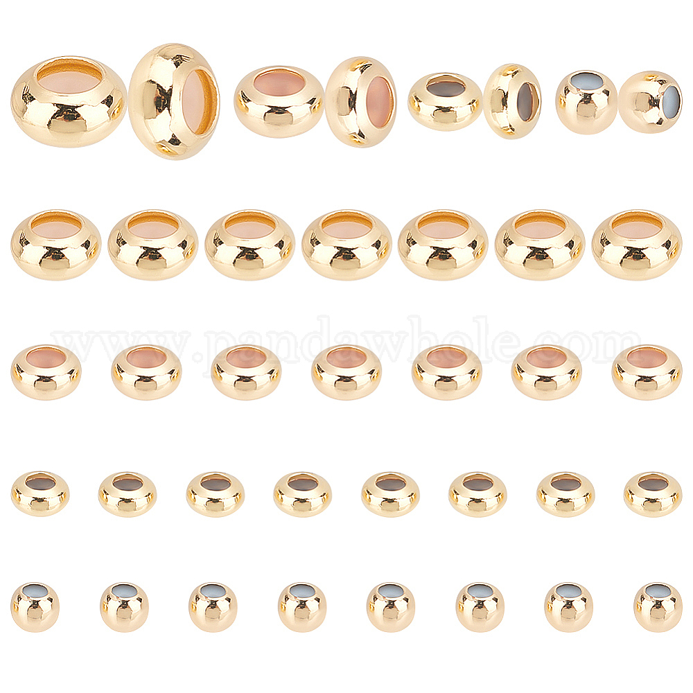 48шт 4 стиль латунные бусины, с силиконом внутри, ползунки, долговечный, рондель