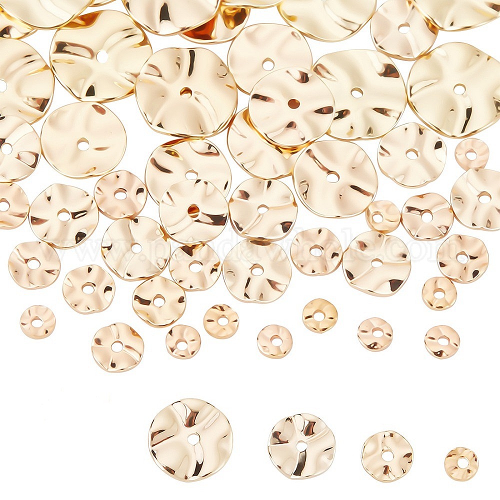 40шт 4 стиль латунные бусины, , плоско-круглые