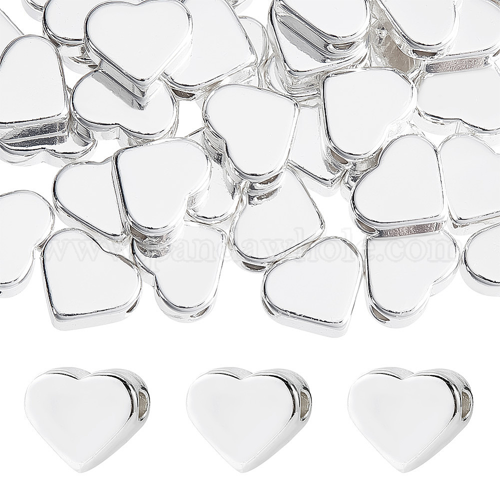 • Серебро 66 латунные бусины шт., сердце, серебряные, 6x7x3 мм, отверстие : 1.6 мм