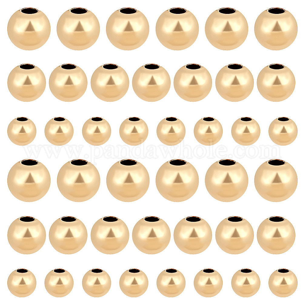 • Покрыть Золотом 30шт 3 стиль бусины из желтого золота, 1/20 14 к золоту, круглые, 2~4 мм, отверстие : 0.5~1.5 мм, 10 шт / стиль