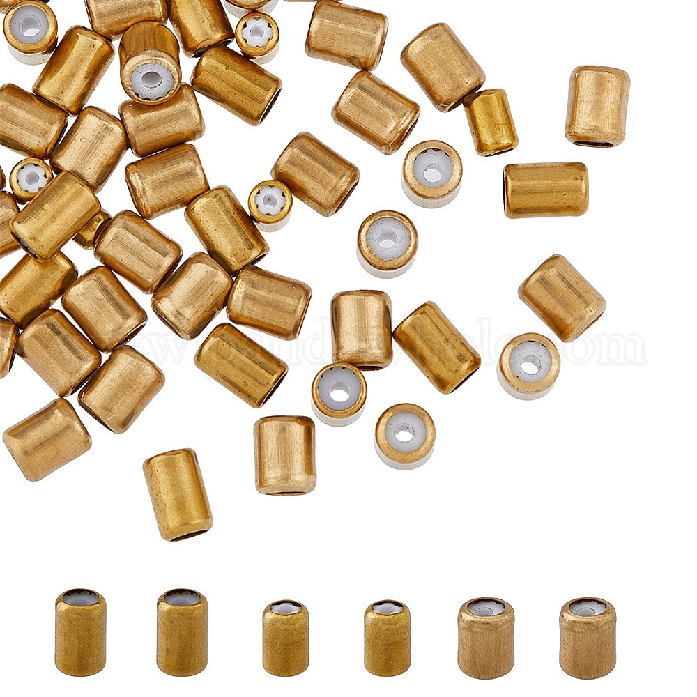 • Античное Золото 180шт 3 стиль латунные бусины, с силиконом внутри, ползунки, колонка, античное золото , 4~5.5x6~7.5 мм, отверстие : 0.8~1.8 мм, 60 шт / стиль