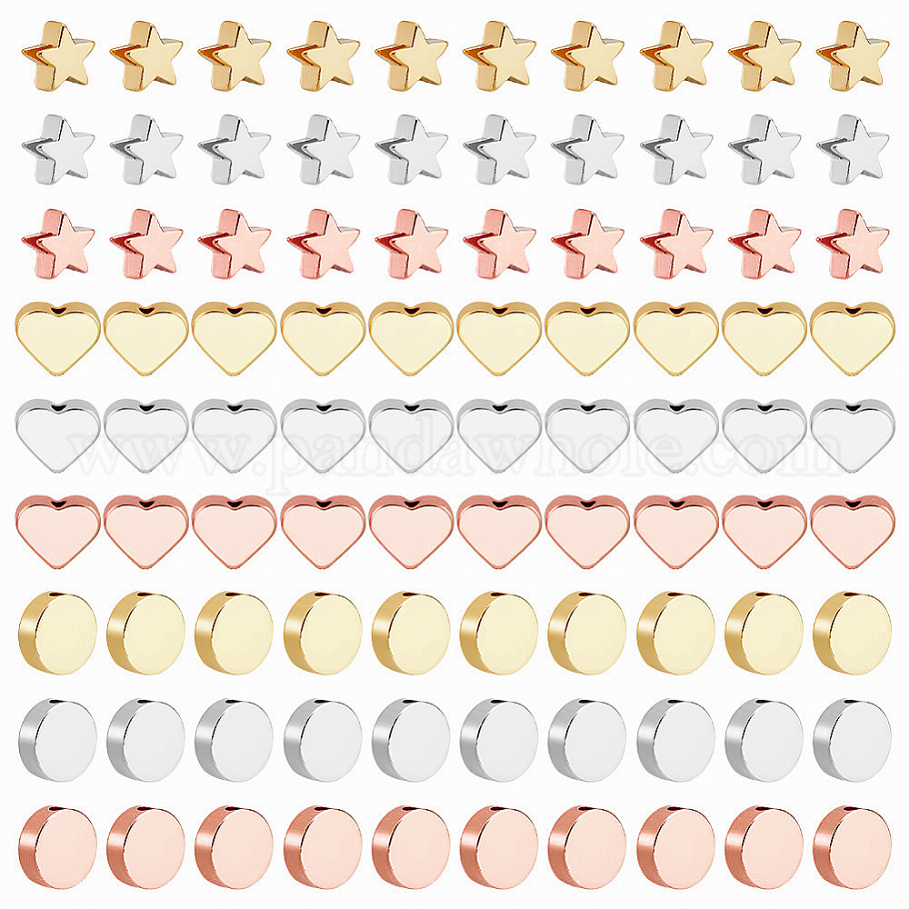 90шт 9 стиль латунные бусины, звезда и плоский круглый и сердце
